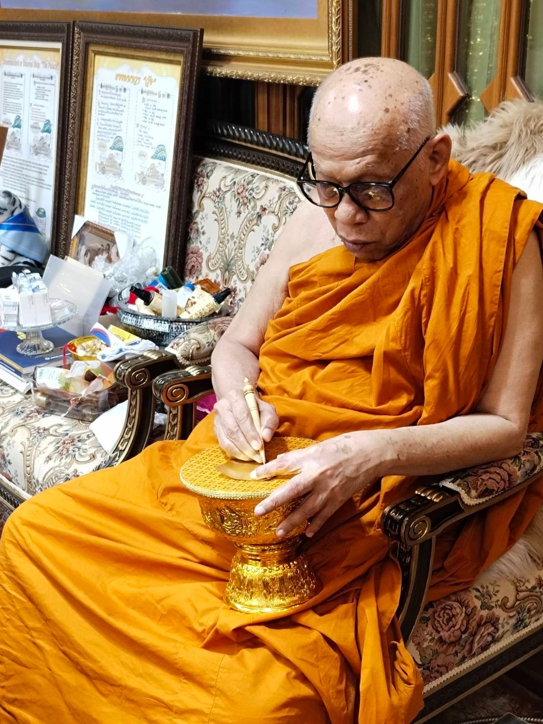 สมเด็จพระพุฒาจารย์ เมตตาอธิษฐานจิต จารแผ่นทองคำแท้ เป็นปฐมมงคล