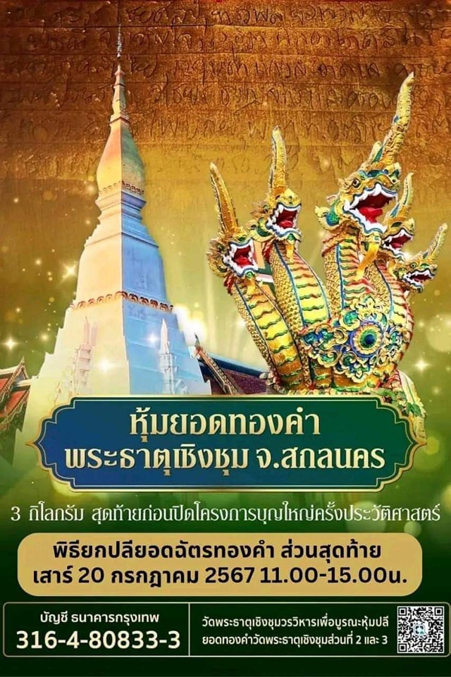 เชิญรับอานิสงส์ ถวายทองคำแท้ 99.99% จำนวน 7.5 กิโลกรัม