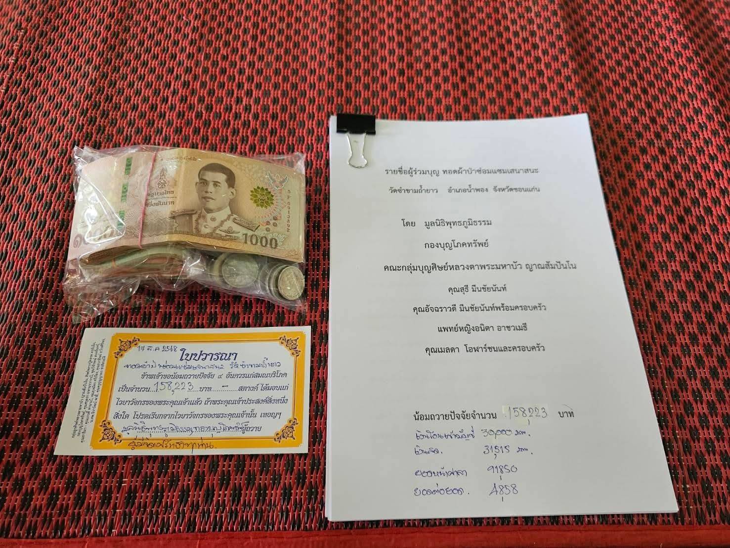 61,515 บาท รวมถวายปัจจัยทั้งสิ้น จำนวน 158,223 บาท