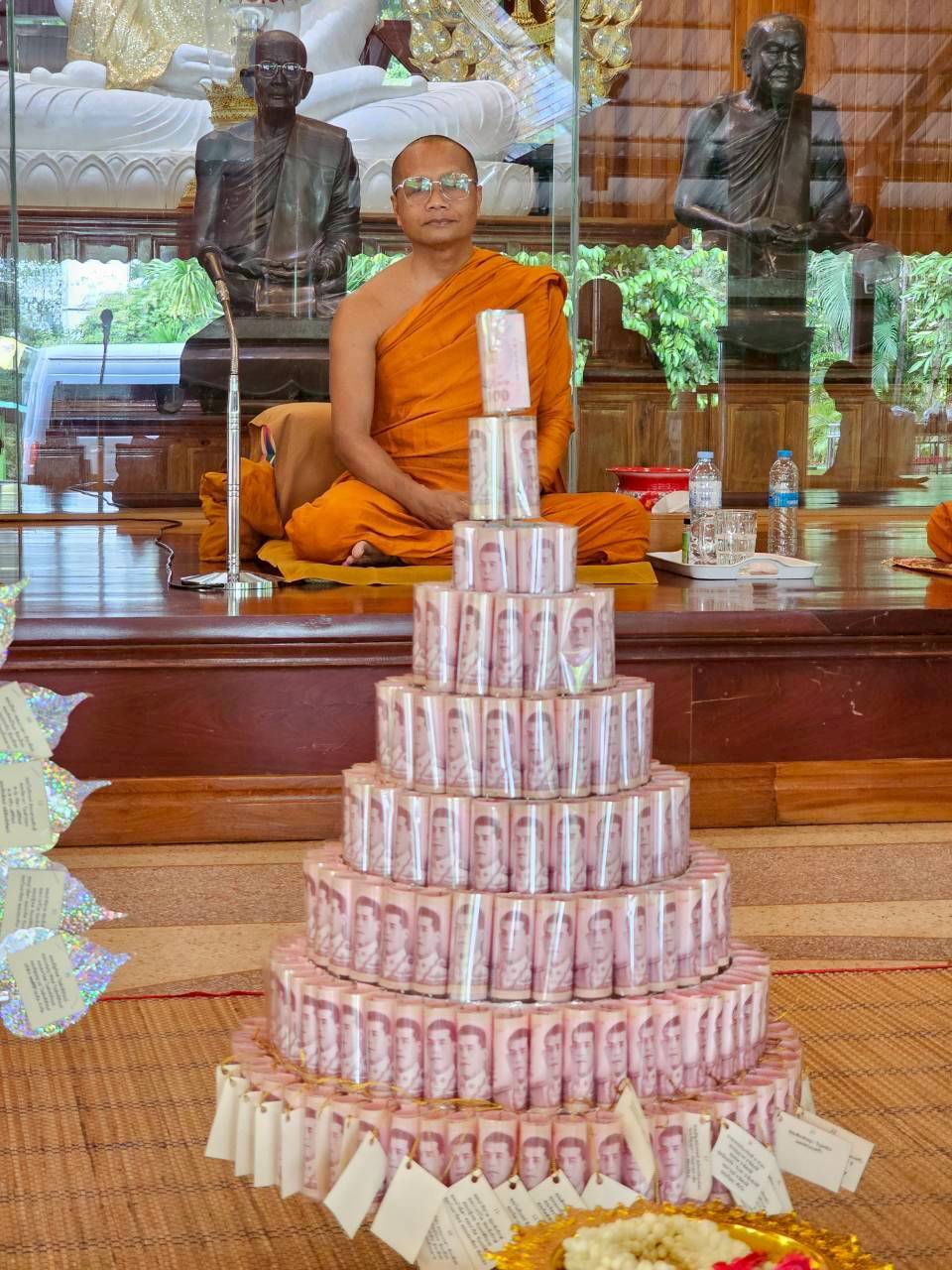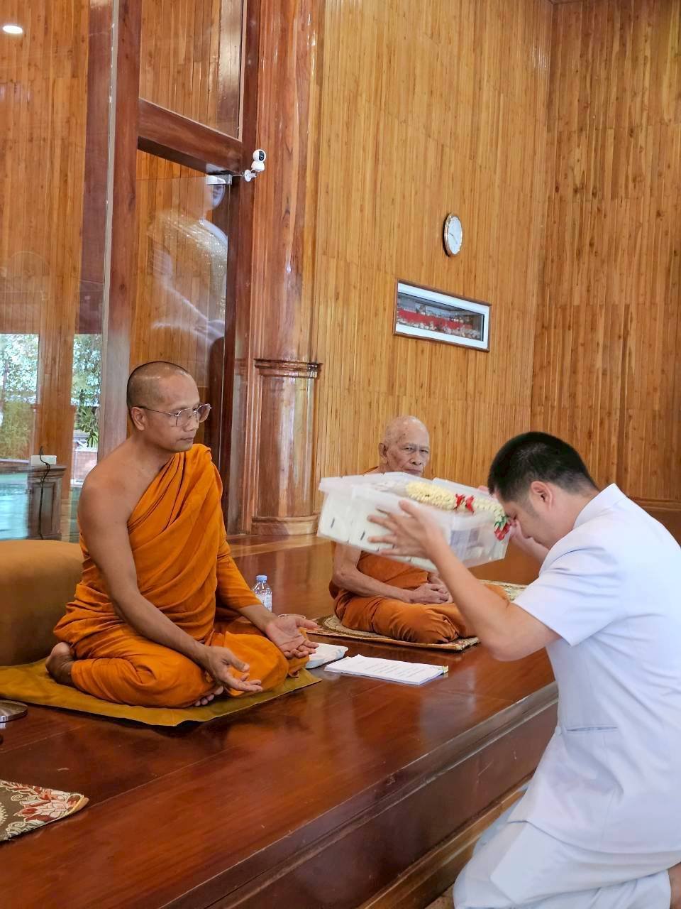 พระอาจารย์พงษ์ภิญโญ รับรายชื่อของพวกเราแล้วอธิษฐานจิตอำนวยอวยพร