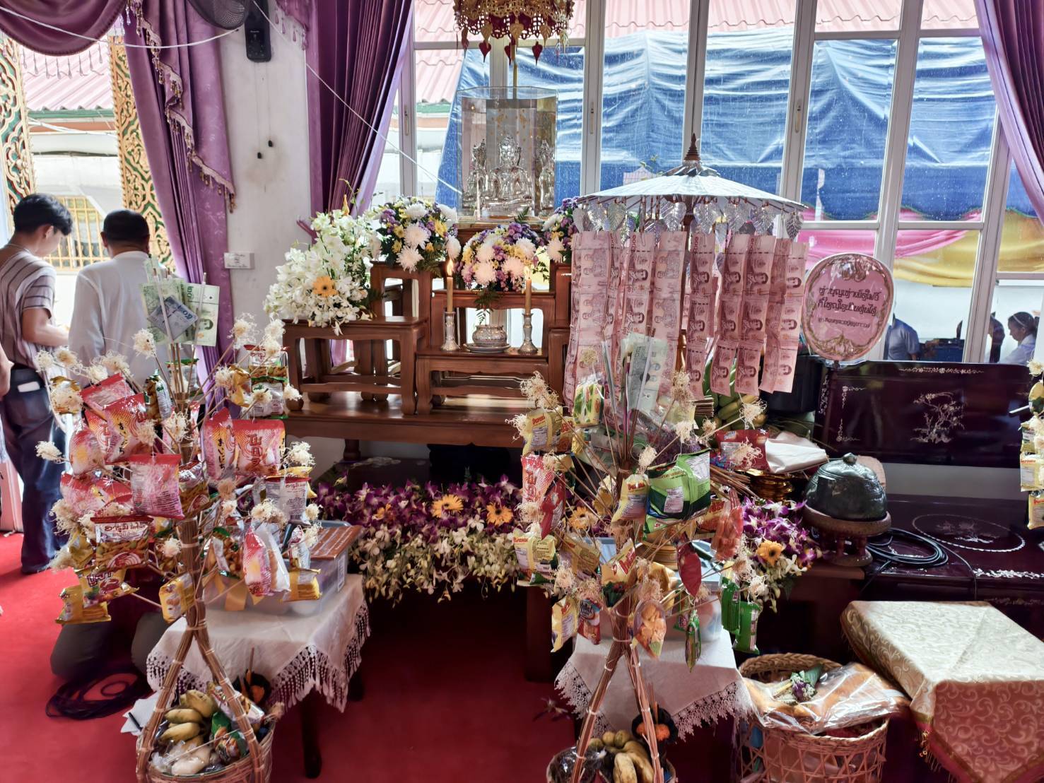 วันแห่งการสั่งสมบุญเริ่มต้นในเวลา 07:00 น. ด้วยพิธีใส่บาตร