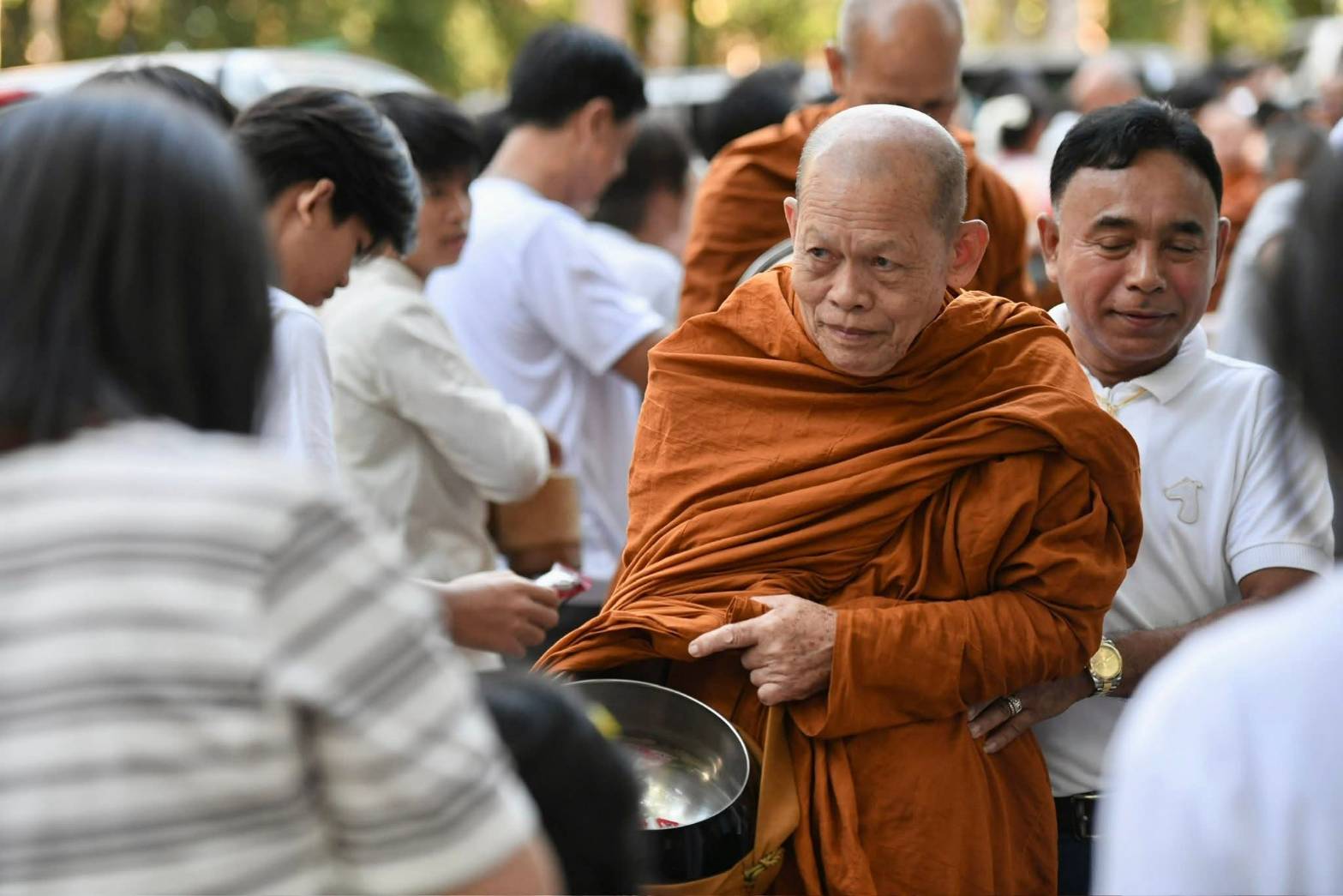 เริ่มด้วยการใส่บาตรด้วยนม ขนม และน้ำ แด่พระสงฆ์นับร้อยรูป