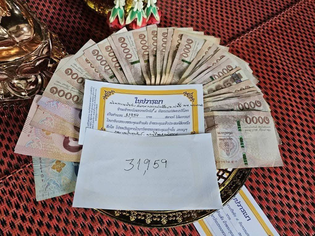 ถวายปัจจัยสบทบหล่อรูปเหมือนจำนวน 31,959 บาท