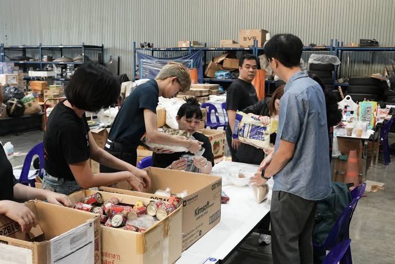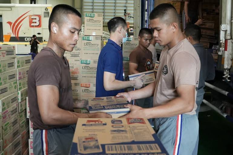 โดยได้รีบเร่งลำเลียงขนส่งสิ่งของบริจาคและถุงยังชีพจำนวนมหาศาล